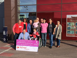 Le 20 octobre 2018 a eu lieu la remise de chèque d'un montant de 2183,23 euro par Carrefour Market de Périers, à l'occasion de la manifestation des Boucles du Coeur. Nous avons eu la présence de M. Maxime Hamon l'ancien directeur et de la nouvelle directrice. Merci à eux et tous les bénévoles pour leur soutien.